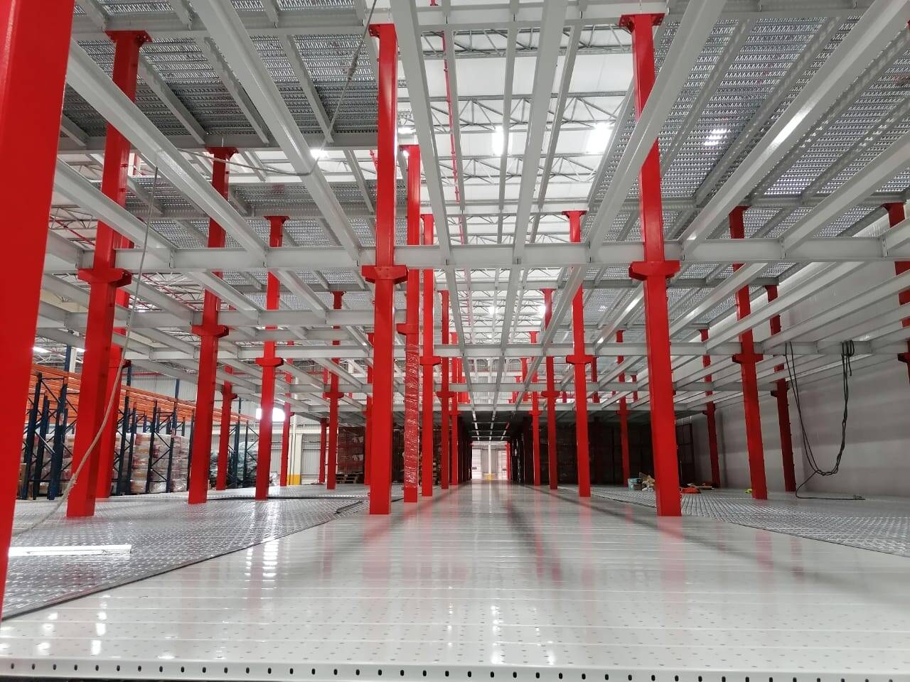 Robust Support Structure: Heavy-duty steel columns support primary and secondary beams, forming a secure framework that distributes weight evenly
