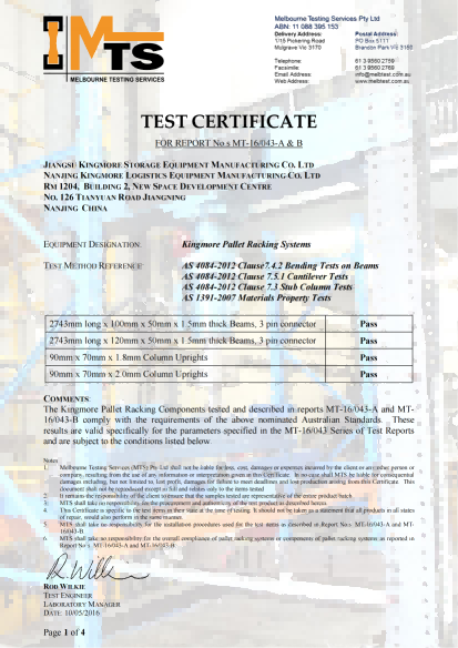 Oct 29, 2025Kingmore is proud to announce that our warehouse racking systems are now fully compliant with the AS4084 Australian Standard. This achievement underscores our commitment to the Australian market and ensures our products meet the highest benchmarks for safety and design.
